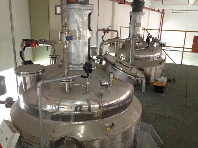 我公司生产的反应釜及配套设备主要用以精巧化工行业,如粘胶剂,不饱和树脂,聚酯,聚胺酯,油墨等,可为客户提供工艺设计,控制电路设计,产品制造,开展设备安装调试。